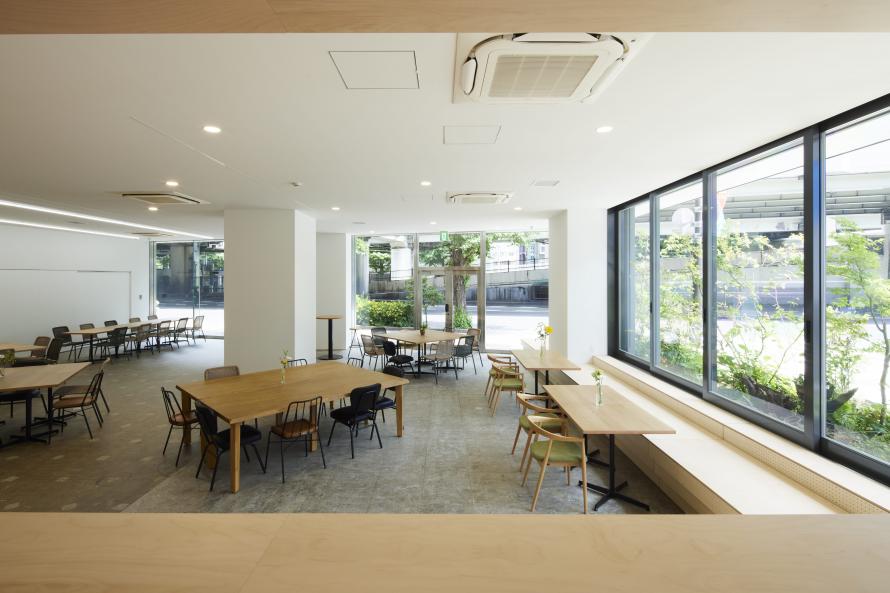 大きな窓から自然光がたっぷり入り、風通しのよい、まるで“室内の公園”のような空間です。