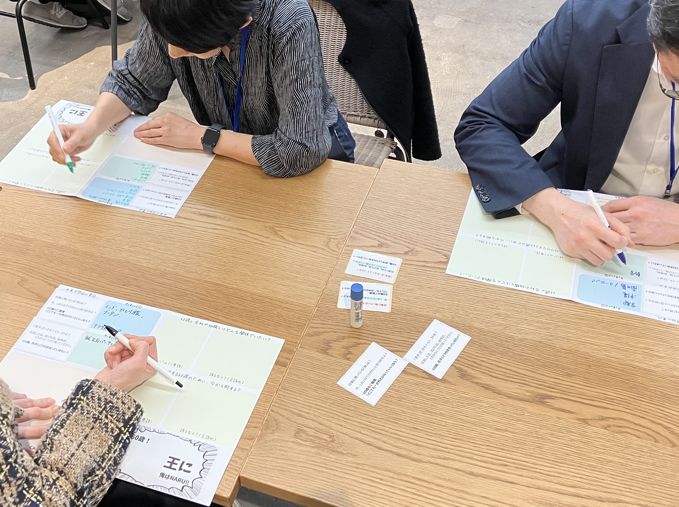 ・イベントの序盤からワークに集中する姿や、そのワークで上がった単語を生き生きと話をされて、他の参加者からのワードを積極的に取り込んでメモをとる姿が印象的でした。